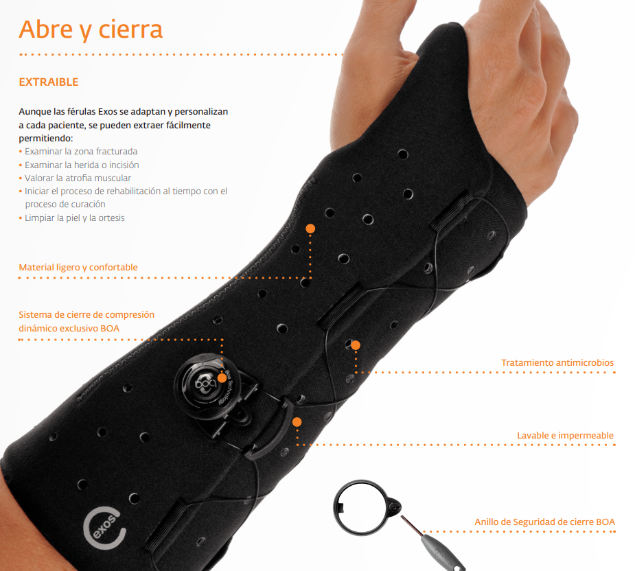 Attelle de poignet courte Exos avec BOA® pour blessures carpiennes ou ligamentaires et fractures du poignet