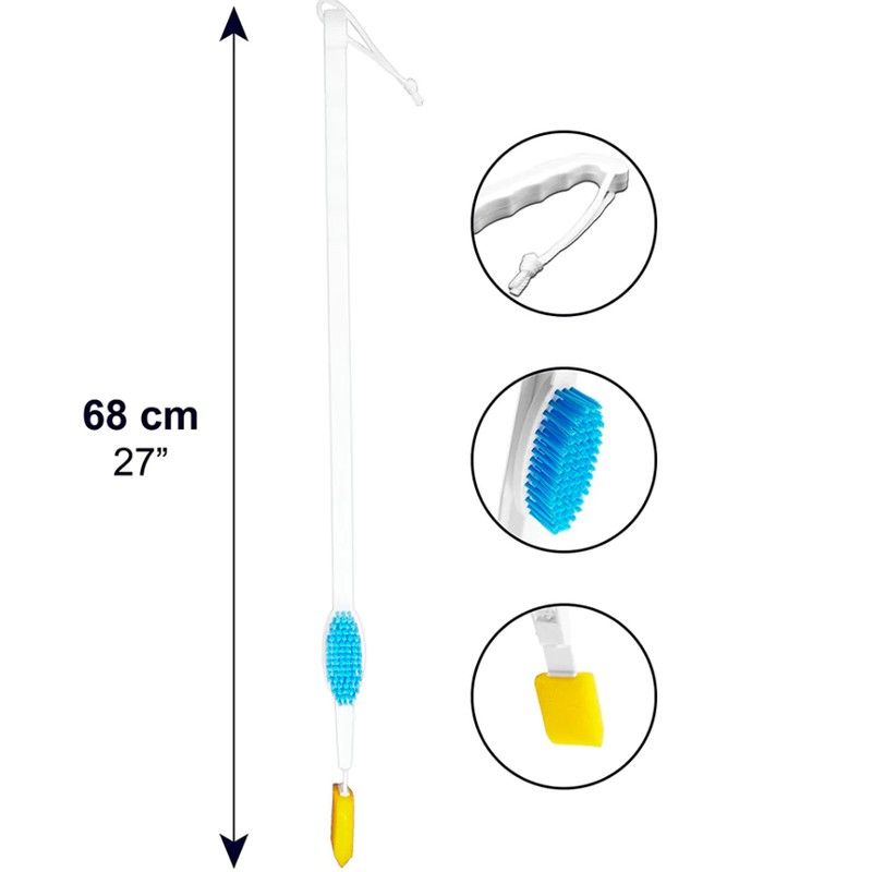 La brosse à pieds a été conçue pour les personnes âgées ou les femmes enceintes, ayant des difficultés à se toiletter.