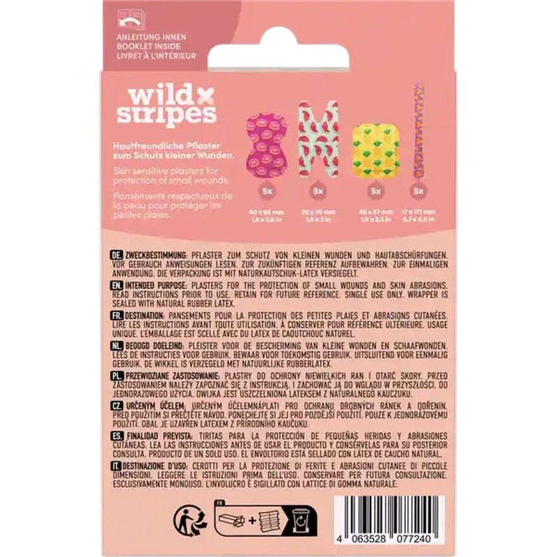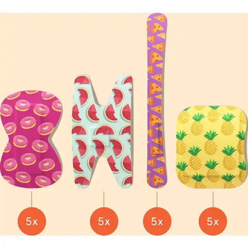 Les pansements en plastique imperméables Wild Stripes Food (20 unités) sont des pansements souples et imperméables conçus pour protéger les petites plaies. Disponibles en trois tailles, ils offrent une protection fiable contre la saleté et les bactéries, permettant à la peau de respirer pour une meilleure guérison. Ils sont hypoallergéniques, respectueux de la peau et dotés d'un adhésif extra fort qui garantit une utilisation longue durée, même en contact constant avec l'humidité. De plus, son retrait est indolore, procurant confort et efficacité.