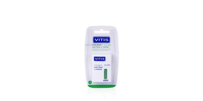 Le ruban dentaire VITIS® au fluor et à la menthe élimine le biofilm buccal (plaque bactérienne) et prévient les caries en procurant une douce sensation de fraîcheur.